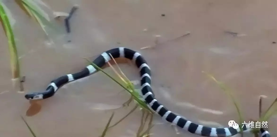 #银环蛇#在食物链中,很多蛇类都会爬入养殖场,偷食小鸡、小鸭或鸡蛋、鸭蛋等,一些大型蛇类也会直接捕食成年家禽,可反过来一些小型蛇类也会被鸡鸭鹅捕食。