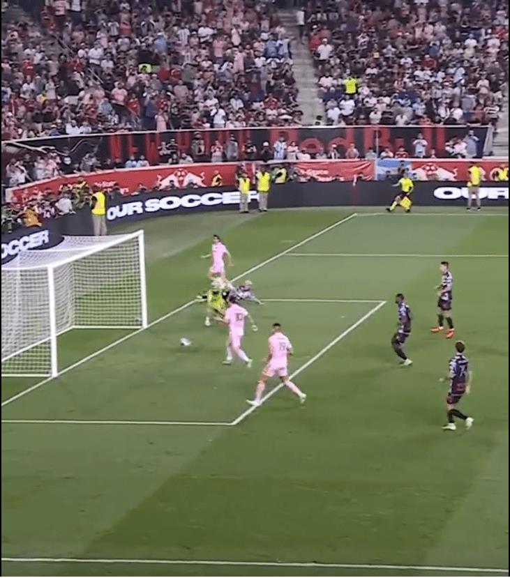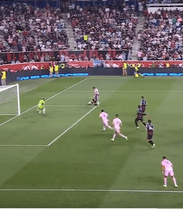 第90分钟,布斯克茨长传,队友左侧摆渡回禁区,梅西得球后闪开防守将球分给克雷马斯基,后者倒三角回传门前,梅西跟进推射空门,迈阿密国际2-0锁定胜局。