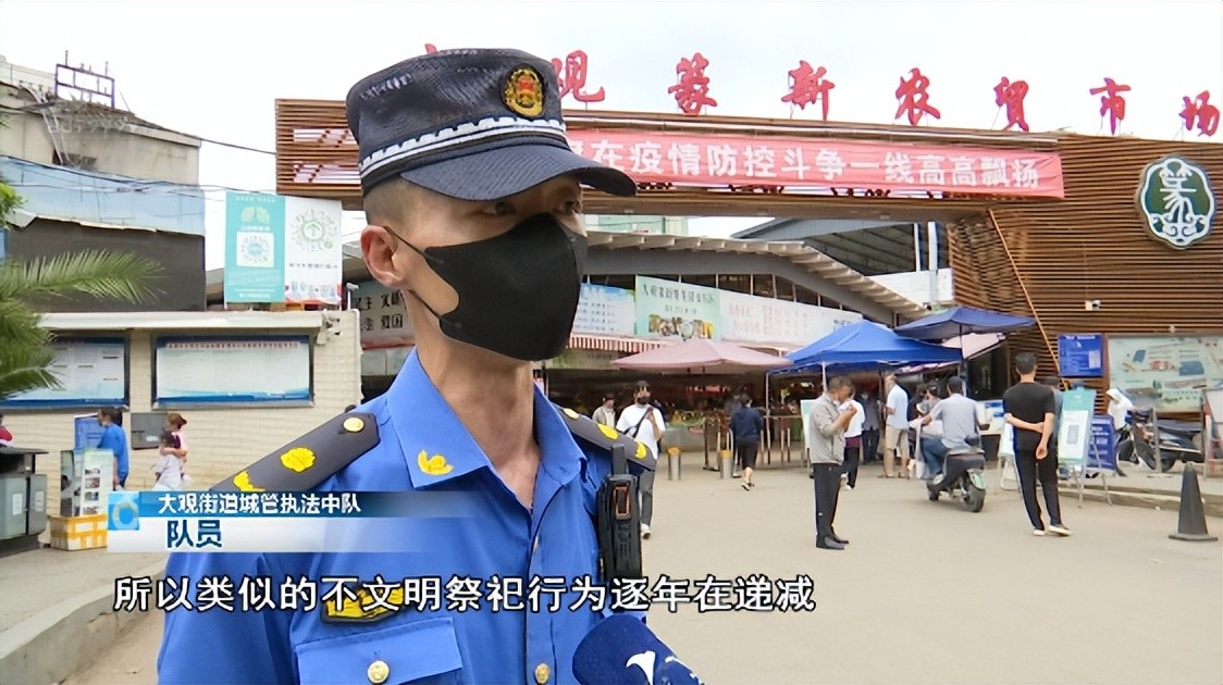 大观街道城管执法中队 队员:“因为这两年宣传比较到位,这种不文明祭祀行为逐年在递减,极个别的市民还是会这么做,但是发现以后,我们都会采取劝导,然后要求其把焚烧后的香烛、蜡纸给清扫干净,也算是为了我们的卫生吧。”