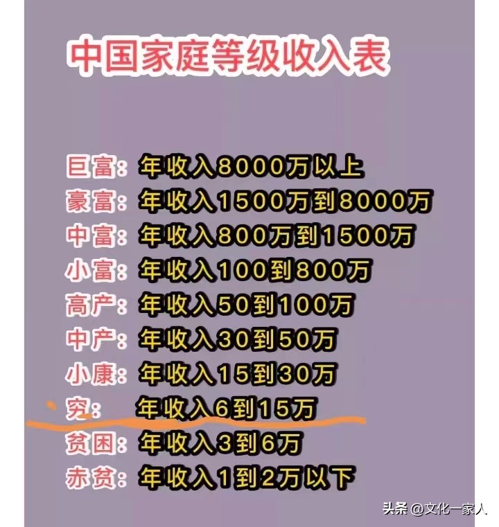 网上有一张中国家庭收入等级表,虽然算不上准确,却也八九不离十。
