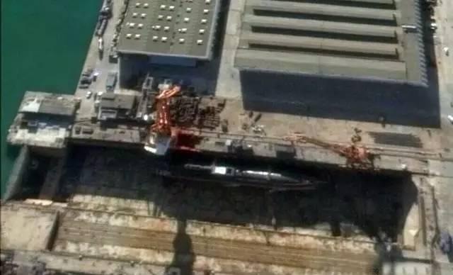 图片为美国商业卫星拍摄的中国北方城市——葫芦岛市一家造船厂建造的一艘093B型核潜艇。