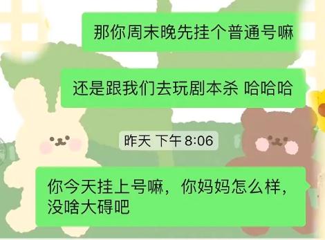 于是女生又问他:" 那你周末晚先挂个普通号吗?"