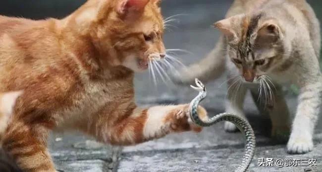 在农村,人们看到家猫吃蛇的场景,是非常的常见的事情。所以,家里养有家猫,可以防止蛇钻进家里来。