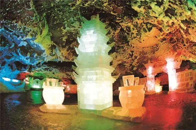 它深深凹陷在火山熔岩内,位于冰川冻土层的几十米地下;观光可以横跨四季,洞外花红绿柳,洞内严冰飞霜;"梅花寒魂彻,冰清玉纯洁。琼枝银树叶,霜花白如雪。”是这两个地下洞府的特色。