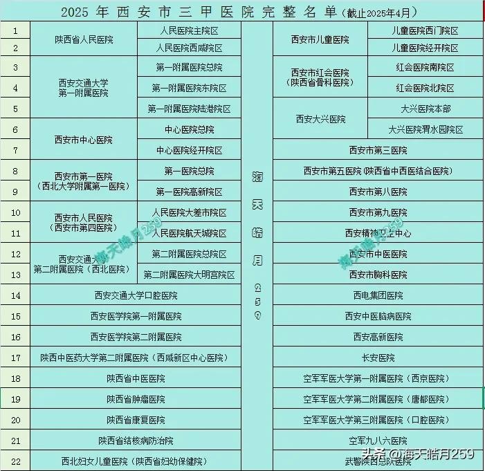 2025年城市三甲医院详细名单系列(八)—西安(全网最新、最全)