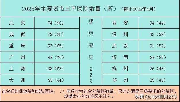 西安在三甲医院数量上以34家排名第七位体现了其实力。