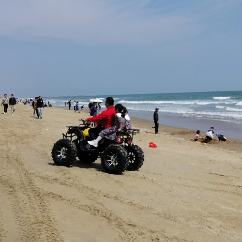 长滩上,还有旅游区新开发的各种游玩项目,我最喜欢的是沙滩跑马和沙滩越野。