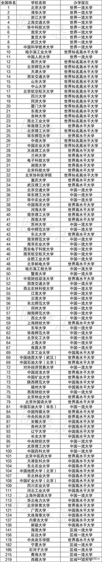 以下为中国116所211大学最新排行榜一览表: