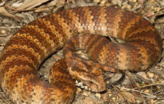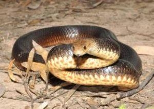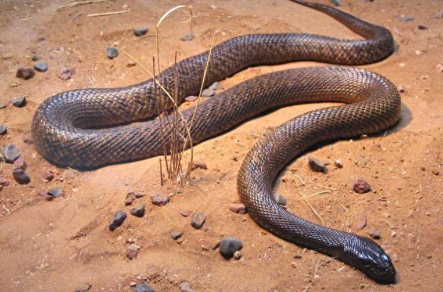 蝙蝠蛇科,剧毒,体长为1.5-2.2米。分布在澳大利亚中部、东部、北部以及新几内亚地区;栖居在干燥的森林、林地、稀树大草原及干燥的灌丛林中。成蛇的体色或为浅褐色或深褐色,有时甚至是黑色。