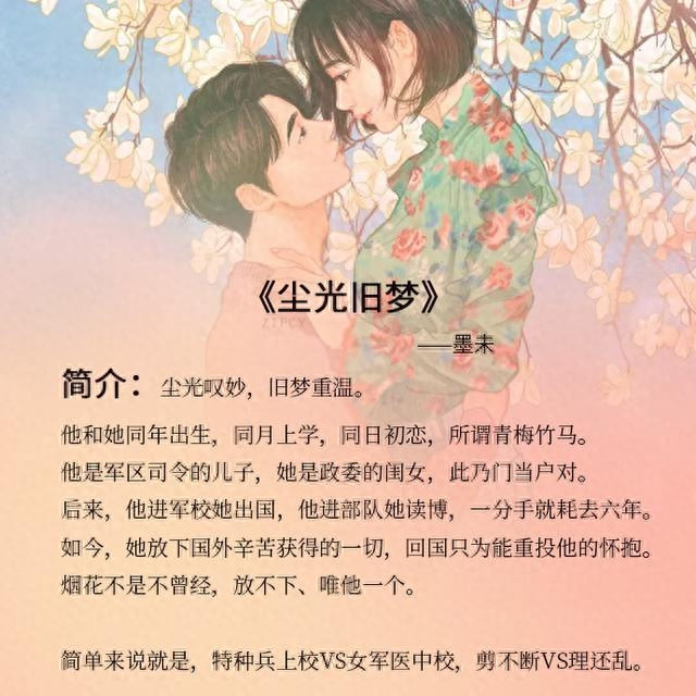 短书评:青梅竹马军旅文,男主特种兵上校,女主军医中校,京味儿高干文,男主是军区司令的儿子,女主是政委的闺女,门当户对,两个是青梅竹马恋人,女主为了自己的理想和事业,离开男主出国,一走六年,男主加入了特种部队,全文剧情是在别后重逢,没有狗血剧情,俩人彼此都还爱着对方,感情自然而然,每个人的少年时,都觉得自己应该飞得更高,不该为谁停留,等回头才发现,原来你才是我生命中最重要的那部分。还好,一切都来得及,强烈推荐!