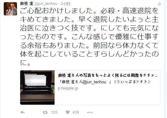 麻枝准病情严重到多次入院,甚至到了要做更换心脏手术的地步,不过最后还是顺利成功出院了