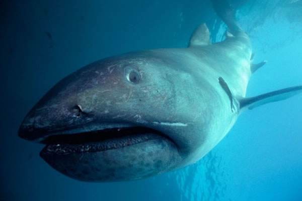 虎鲨这个名字来自于背部的深色条纹,条纹会随着年龄的增长而逐渐消失,最大的标本记录长达5.6米,主要生活在中太平洋热带水域,它是超级吞噬破坏者,可以咬碎各种东西,连车子的钢板都曾经在他的肚子里面发现,和大白鲨不同,它不仅会咬伤人类,它特殊的牙齿外形用于破坏坚硬物体特别有用,就连龟壳都能轻松咬碎。