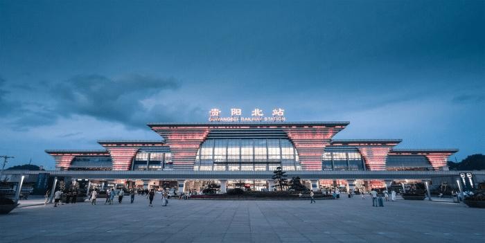 2008 年 9 月 19 号,贵阳北站开始修建。到 2014 年 12 月 26 号,就开始用了。这归中国铁路成都局管着。这可是贵阳铁路枢纽里最大的客运站,也是贵州最大的高铁站。那就是贵州高铁客运的 “心脏”,还是贵州第一个大门户。这车站面积有 25.5 万平方米,坐人的房子面积是 12 万平方米,站台的雨棚有 8 万平方米。站房分地下三层,地上两层。站场有 28 个站台面、32 条线,有 2 个基本站台,13 个中间站台。这贵阳北站的设计,传承了花桥和鼓楼的老韵味,意思就是贵州的大门。修的时候用了建筑业十项新技术里的十大项 51 小项,还弄出了 10 项自己的新办法,像高大空间超长密拼铝单板双开交替式施工技术、大型铁路站房叠级钢网架分级累计提升这些。