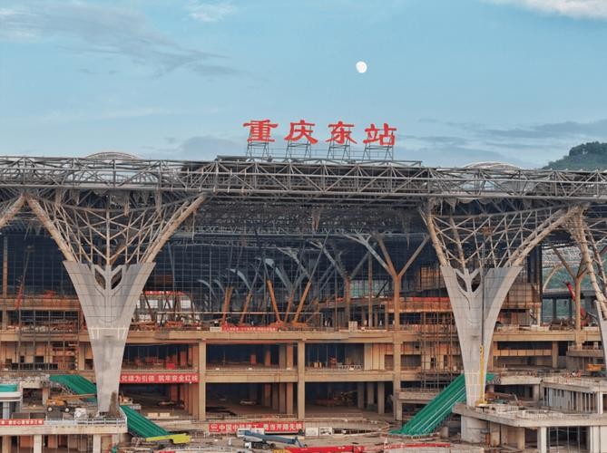 重庆东站那也是厉害得很,是全国在建最大的站城景融合的高铁枢纽之一,还是重庆新建最大的 “四网融合” 综合交通枢纽。总建筑面积 122.28 万平方米,站场规模 15 台 29 线。重庆东站这会正在建设中。有望在明年(2025 年)就能正式用上了。