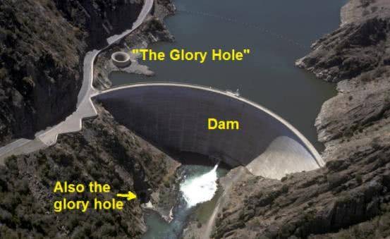 荣耀洞进水口直径为22米,到大坝另一端的出水处却缩小到8.5米,整体垂直落差达到84米,进水口距离大坝60米,距离下游出水口约210米,当水库表面积达到84平方公里,水面高成为134米时水才回从荣耀洞的唇口进入。