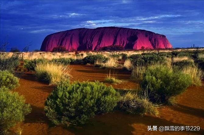 艾尔斯巨石不仅是世界上最大的独块岩体,它还会随着一天的太阳的升降而呈现出不同的色彩,十分迷人。