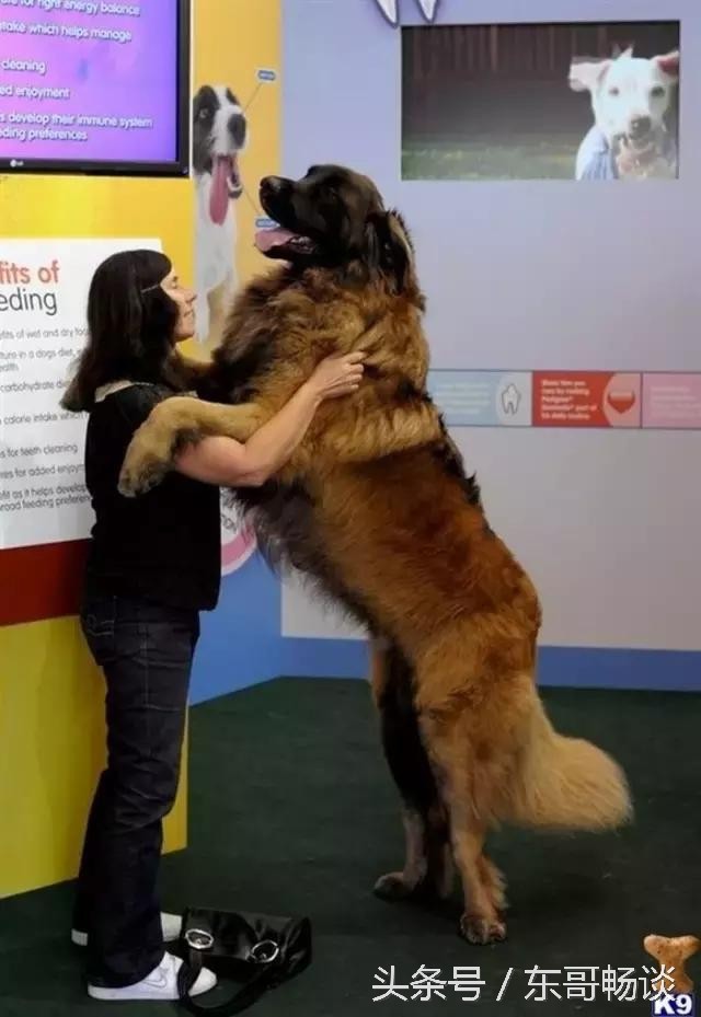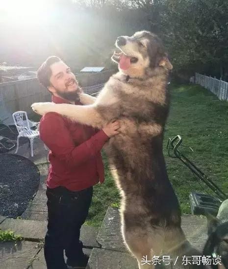 高大的杂种狗,随便一站都充满了气势。1.4米的身高和1.03米(40.5英寸)的身体宽度,站在朱莉的身边,朱莉显得特别弱小。