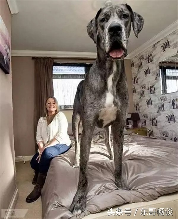 英国一只大丹犬身高长到了惊人的1.4米(4英尺9英寸)打破了世界纪录,成为世界上最大的狗。
