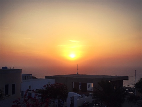 伊亚镇建立在海边的悬崖上,是圣托里尼岛第二大镇,被认为是世界上观看落日最美的地方。每天都会有成千上万的来自世界各地的游客聚集在这里享受落日落的余晖,在太阳落下的那一瞬间,时间仿佛停滞了,太阳慢慢消失在地平线,镇上却突然变得宁静安详。每个人脸上都突然带上微笑,安静的送走夕阳的最后一抹余晖,每个人都陶醉在这人间美景中,大家都会情不自禁的鼓掌,他们被大自然的美景折服了。