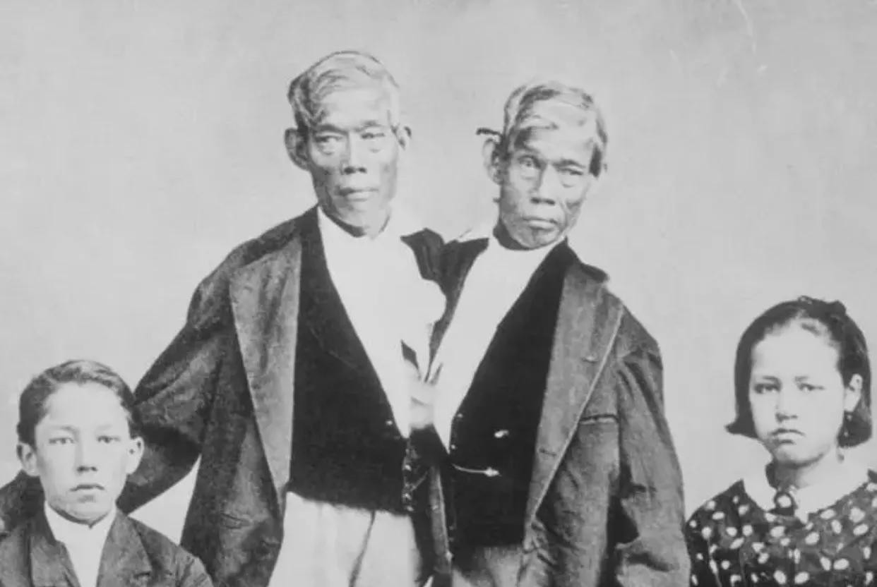 在泰国经历了艰苦的童年之后,1829年他们被卖到美国,在马戏团开始表演,并攒下了第一桶金。28岁时,恩和昌靠这笔钱定居美国,甚至与一对英国的姐妹结婚,并且幸福的养育了21个孩子。