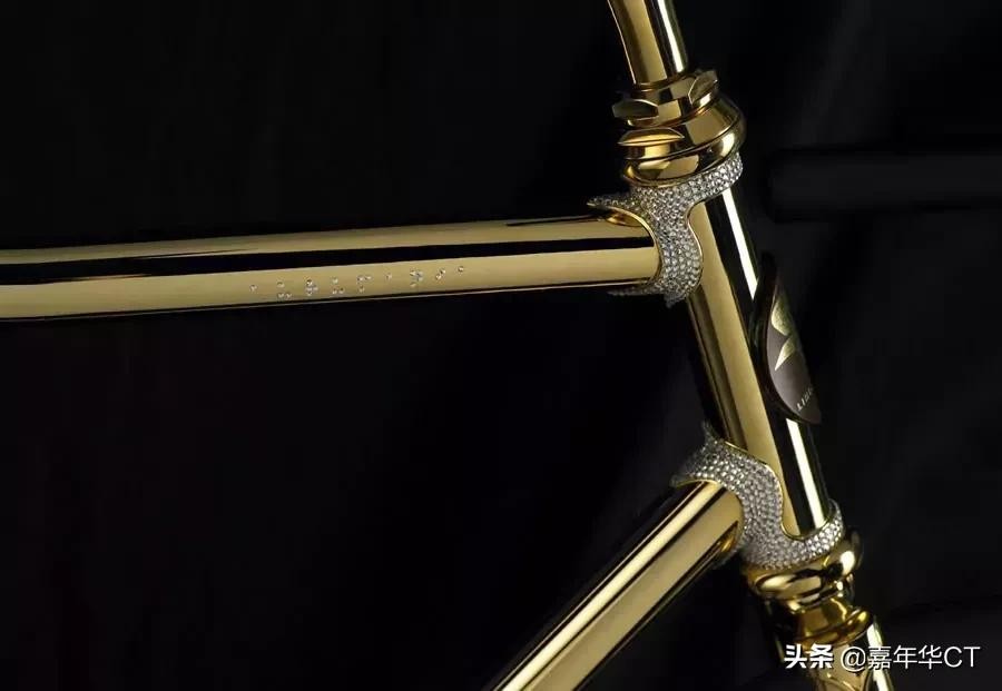 水晶版的镜架上镶有宝石和钻石。手工制作的黄金自行车,定制的真皮座椅,缝制的人体工程学把手。
