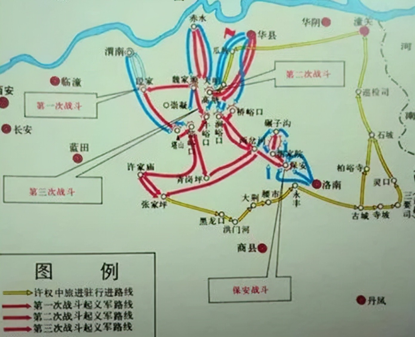 在渭华地区,敌人集中了孙连仲、田金凯、魏风楼部3个师的兵力,还调集了大批反动警察和民团。6月上旬,以一个旅的兵力对渭华地区革命政权发动第一次进攻。敌由渭南县城沿龙尾坡向起义中心区域进攻,企图直扑陕东游击队塔山根据地,结果被起义军民英勇击退。接着,敌人又以一个师的兵力从华县城出发向高塘进攻,企图攻占工农革命军司令部驻地高塘镇。