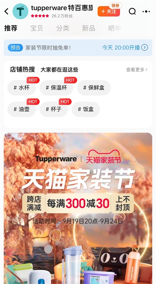 特百惠天猫旗舰店拥有超过26万粉丝。 图片来源:电商平台截图