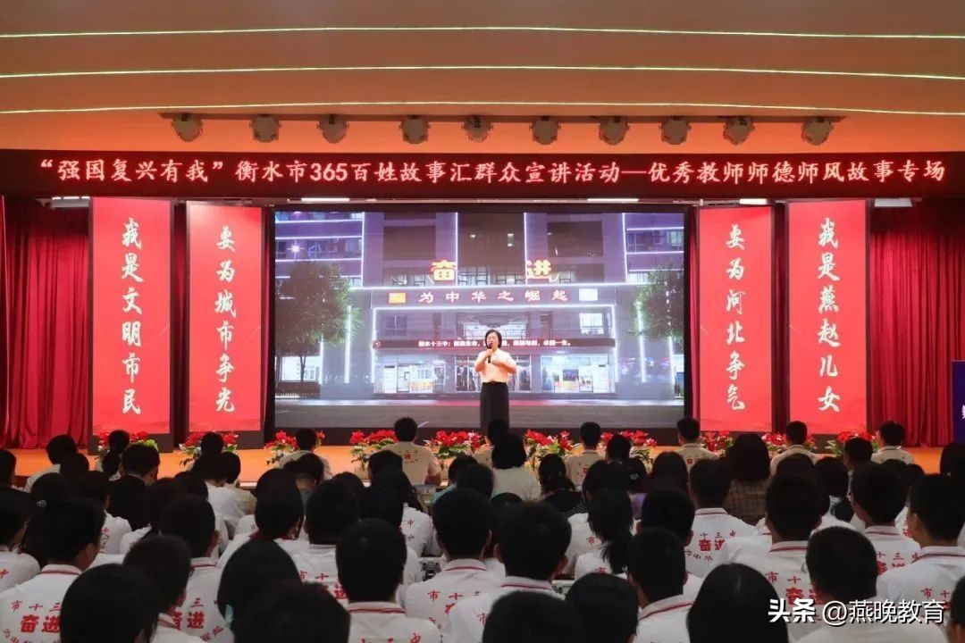 承办,衡水十三中协办的“强国复兴有我”衡水市365百姓故事汇群众宣讲活动——优秀教师师德师风故事专场顺利召开,来自全市各学校的14名优秀教师代表进行了精彩分享,700余名师生代表现场聆听优秀教师的教育故事。衡水市校园食品安全和膳食经费管理现场观摩会在该校举行,来自全市教育系统各单位、各校的近百位分管负责同志现场交流,实地参观。
