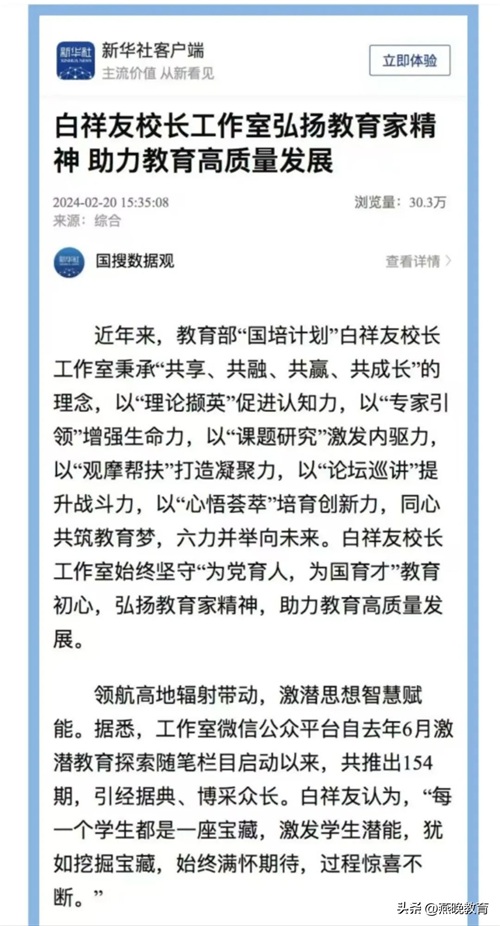 白祥友书记被光明《教育家》杂志邀请,走进线上圆桌论坛,做《深耕奋进文化 赋能内涵发展》专题报告。白祥友校长工作室微信公众平台全年推出281期,引经据典、博采众长。众多权威媒体纷纷聚焦我校党委书记白祥友的激潜教育思想。新华社记者刘仝保对白祥友书记进行题为《探索“激爆潜能”领航中学教育》的专题报道。新华社客户端、中国网、河北日报等媒体纷纷聚焦激潜教育思想。