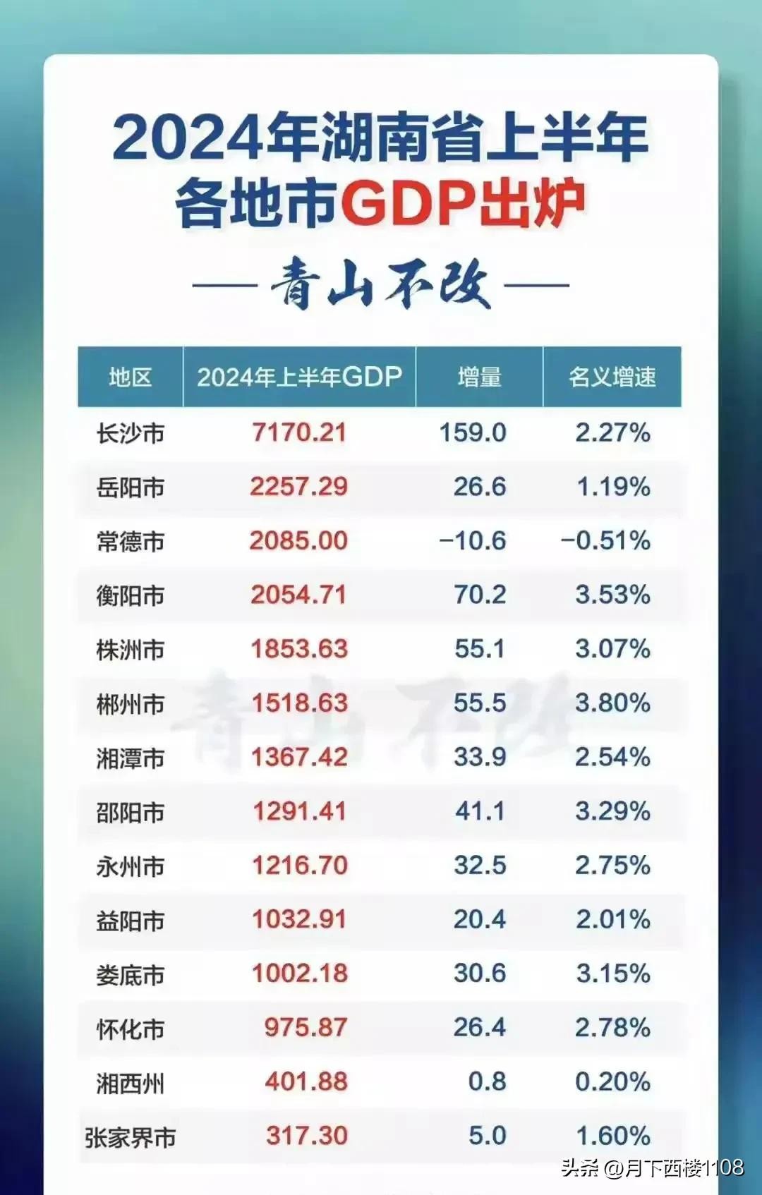 以上数据是2024年上半年湖南省14个地级市(州)的GDP数据情况,衡阳市位居湖南第四位。