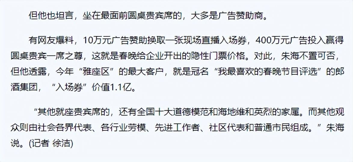 在春晚的观众席中,赞助商无疑是占据了一席之地。他们不仅是春晚的经济支持者,更是通过春晚这一平台,提升了自己的品牌影响力。据网友爆料,赞助费的高低直接决定了他们在观众席中的位置,从十万到四百万不等。这些数字背后,是他们对于春晚这一文化盛事的支持和信任。坐在尊贵的前排,他们不仅享受着明星们的表演,更是享受着那份独有的荣耀和尊贵。
