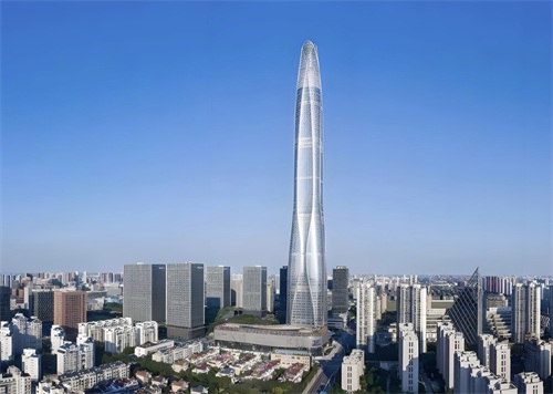 位于中国天津,2019年封顶,达到高度597米,共117层,被称为世界最高烂尾楼,虽然尚未完全竣工,但其高度已经足以跻身全球十大高楼之列,目前排名第六。其独特的钻石形状结构体和高度惊人的混凝土核心筒都彰显了其不凡的建筑实力。