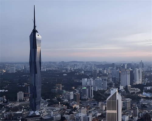 位于马来西亚吉隆坡,在2023年正式封顶,总高678.9米,共118层,目前为世界第二高楼。其高度超过了原本的第二高楼上海中心大厦。