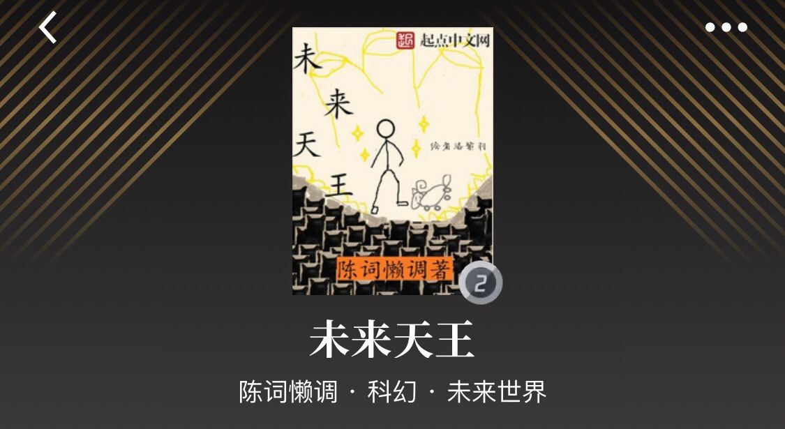 既然提到了回猫,就不得不说一下《未来天王》,这本书是词猫的懒觉目前仍在连载的书,也同样是一本无女主文,相比温馨的回眸,这本书更充满激情和正能量。