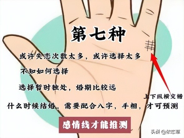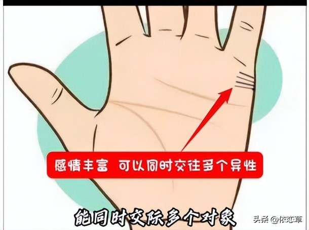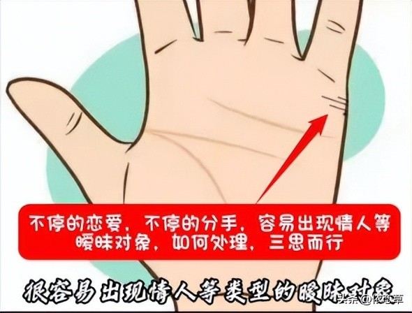 解读:表示此人会不停的恋爱,不停地分手,很容易出现情人等类型的暧昧对象。婚姻不适合这类人,情人都比较贴切,所有有这种手相的对于如何处理感情,一定要三思而后行。