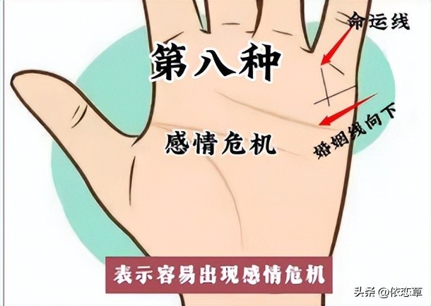 1、如果婚姻线向下接近命运线,表示容易出现感情危机