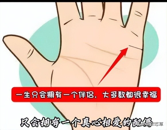 解读:拥有这种婚姻线的人,一生只会拥有一个真心相爱的人,感情专一,婚姻稳定,能与伴侣长久相伴。这类人性格温和,善于经营感情,婚后生活和谐美满。至于另一半幸不幸福,就需要彼此的感知力还有相处方式了