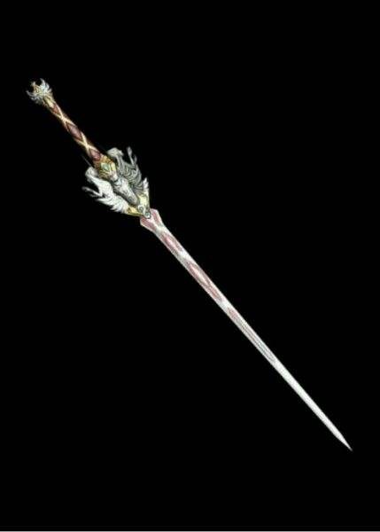 此枪乃是取自天外陨星之精华花了五十六年的时间,经过了一万余次的反复磨炼成形,终于铸成了一柄神枪。乃枪中之祖。