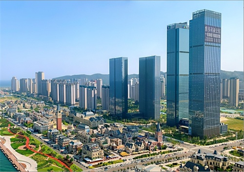 位于大连市中山区大公街23号,集酒店、住宅、商业为一体的综合性建筑,主楼高383.5米,共计80层建筑。