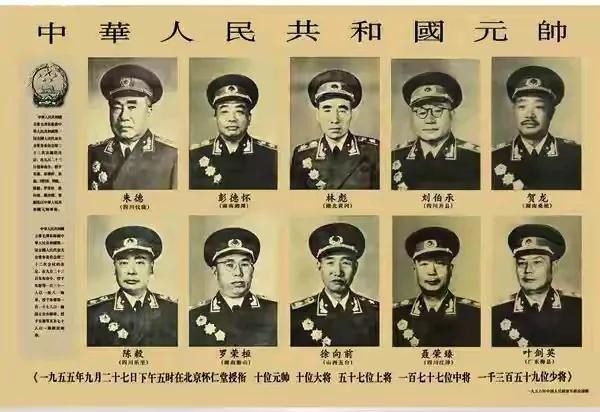 01.朱 德(1886.12.01—1976.07.06),四川仪陇人。中华人民共和国元帅。1922年11月加入中国共产党。1955年9月授衔时是中央政治局委员、中央书记处书记,任中华人民共和国副主席、中央人民政府人民革命军事委员会副主席、国防委员会副主席等职务,时年69岁。