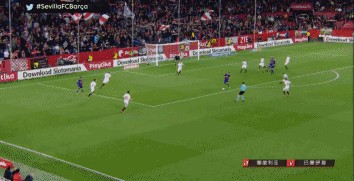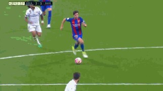 这个场景发生在巴萨客战皇马的比赛中,这次我们可以看到格列兹曼完成了一次教科书般的跑位。格列兹曼在持球时,第一时间并没有选择套上的阿尔巴,转而变向走中路找到梅西,而自己通过非常漂亮的跑位绕开了皇马中路的防守。可以看到,梅西吸引了皇马三人防守,将球送给阿尔巴横穿时皇马防守重心已经失衡,而克罗斯此时已经完全放空从身边跑过去的格列兹曼,后者得以杀入禁区完成射门,可惜的是这次射门打高了。