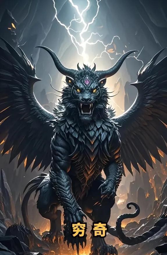 穷奇,外形似虎,身有双翅,叫声如犬吠。它的形象最早见于《山海经・西山经》。穷奇不仅长相凶恶,行为也极为残暴,是个极为危险的存在。它擅长飞行,能快速穿梭于各地。它的行事逻辑与常规相反,喜欢帮助恶人,打击好人。每当看到有人打架,它会吃掉正直有理的一方;听说某人忠诚老实,它就会跑去咬掉那人的鼻子;而如果听说某人作恶多端,它反而会捕捉野兽馈赠给他,被视作善恶颠倒的象征。