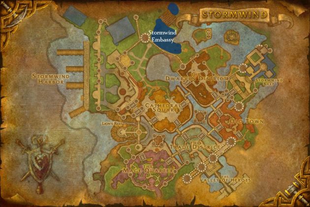 暴风城和奥格瑞玛大部分都与当前版本相同,除了两个新增区域。每个新区域被称为“暴风城/奥格瑞玛大使馆”,其艺术风格十分接近卫戍部队或驻防军。