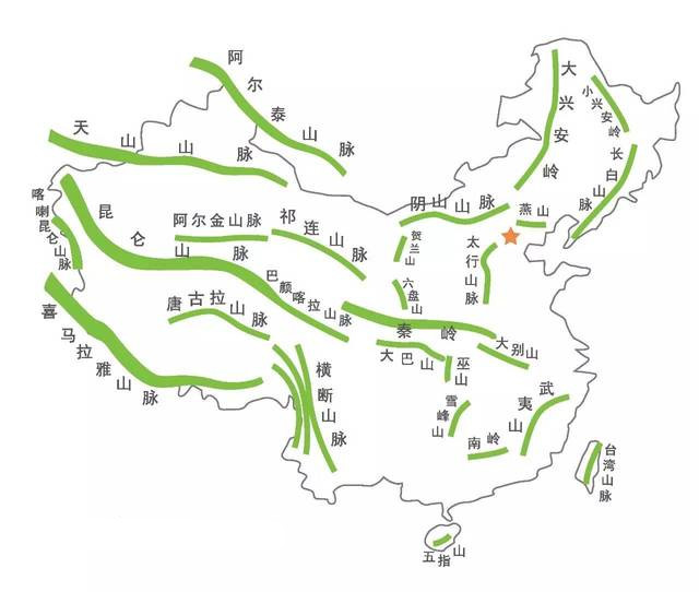 中国:喜马拉雅山、昆仑山、天山、阿尔泰山、祁连山、阿尔金山、巴颜喀拉山、唐古拉山、横断山、秦岭、大兴安岭、小兴安岭、长白山、阴山、太行山、武夷山……四大高原……