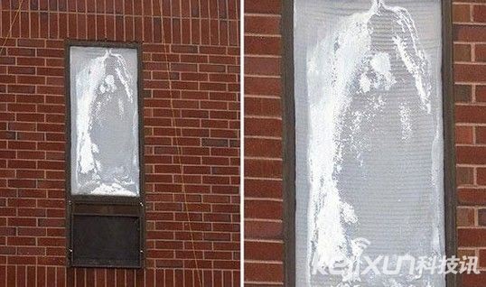 马萨诸塞州波士顿,玻璃窗冷凝水产生的圣母形象。[pagebreak]