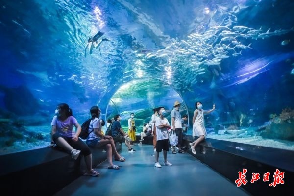 长江日报-长江网8月13日讯 8月13日,不少游客在海昌极地海洋世界游玩,据工作人员介绍,“武汉海昌极地海洋公园全年正常开园时间为上午9点,因免票期间人流量较大,且夏季炎热,为减少人流聚集,提升游客体验,整个8月,将开园时间提前了半小时。”(记者许魏巍 摄影报道)