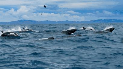海豚本是群居动物,它们会一生和自己的家族生活在一起。在海洋中一天可以游上百公里。