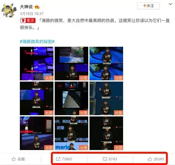 这条微博讲了是关于海豚的事情,人类通常看到的海豚是非常乖巧的,听从人类的话,玩球、亲吻人类。
