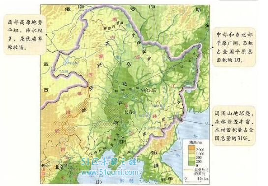 东北平原(又称松辽平原)位于东北地区中部。平原东西两侧为长白山地和大兴安岭山地,北部为小兴安岭山地,南端濒辽东湾,南北长约1000多公里,东西宽约400公里,面积达35万平方公里,是中国最大的平原。