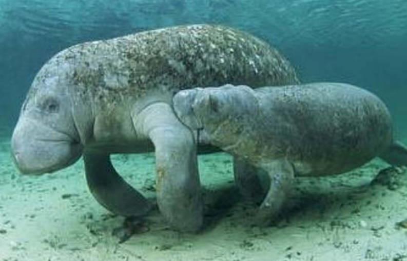 海牛是属于海洋哺乳动物,平时主要吃草,身体长度大概4米左右,行动速度很慢,一般生活在潜水当中,会通过漂浮来加快移动速度。